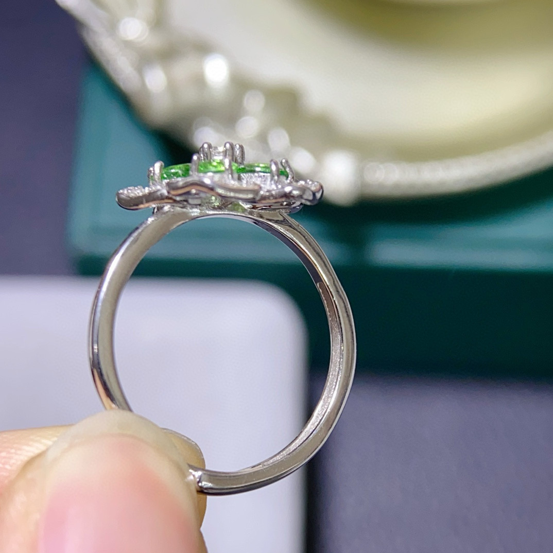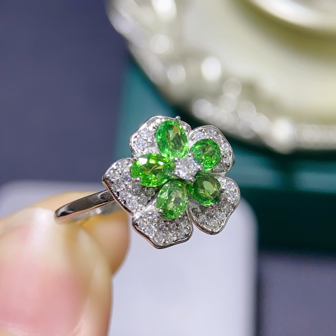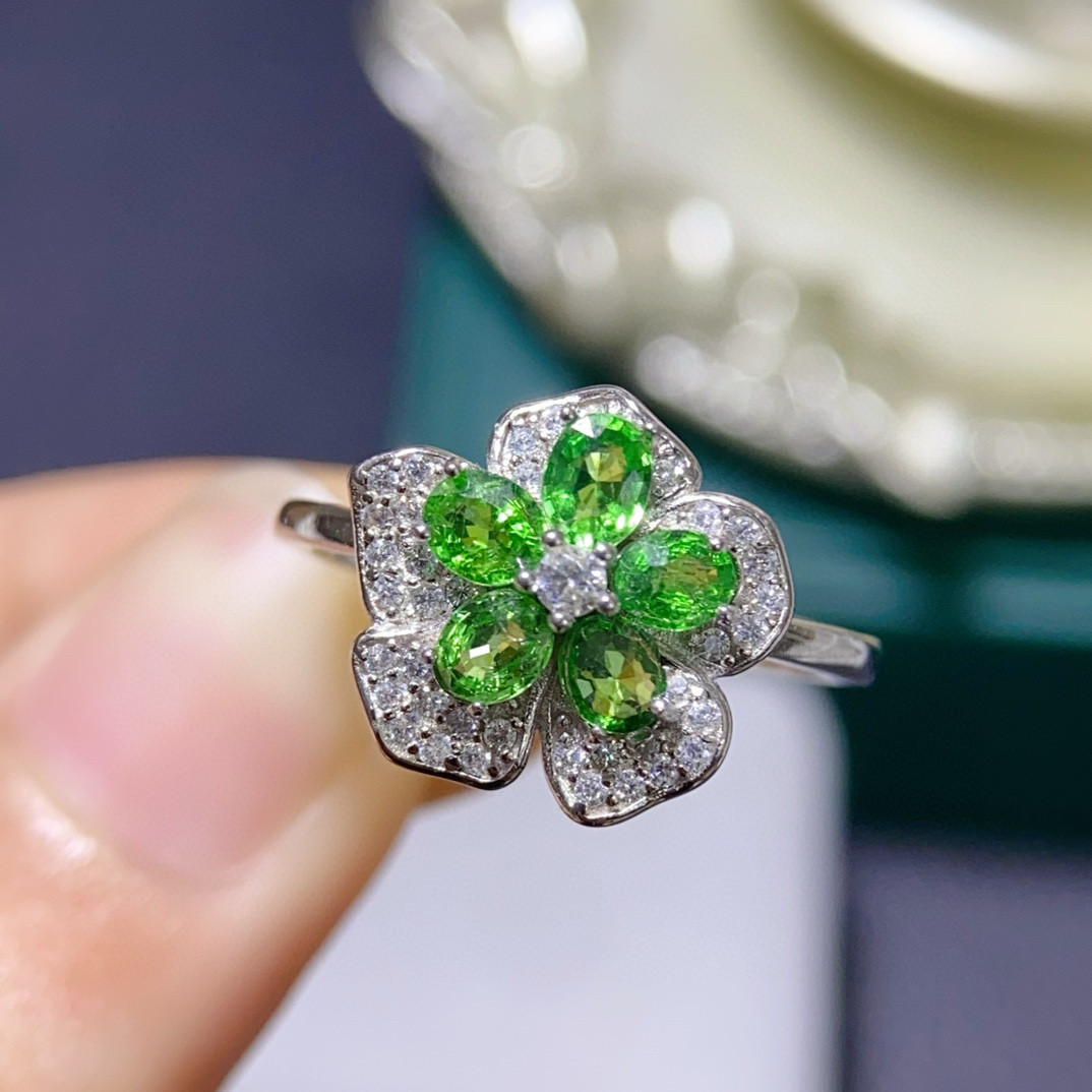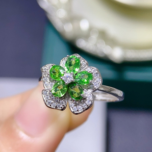 彩宝轻奢花朵戒指女ins镶嵌满钻冷淡风时尚 天然沙弗来戒指 个性由