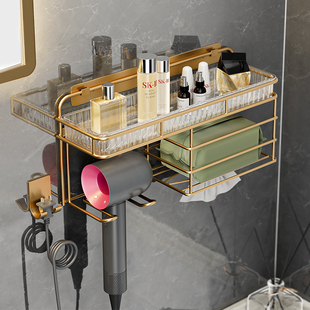 卫生间轻奢免打孔墙上洗脸巾置物架壁挂洗漱台护肤品抽纸一体收纳由