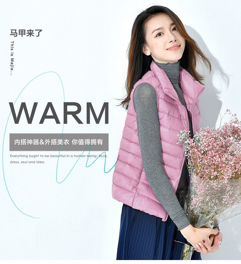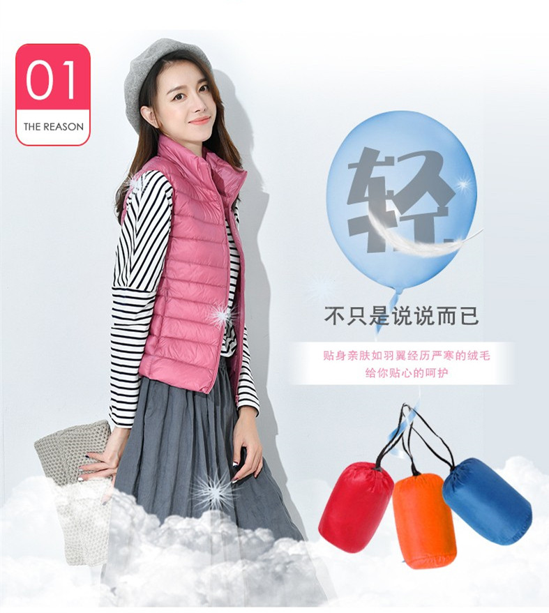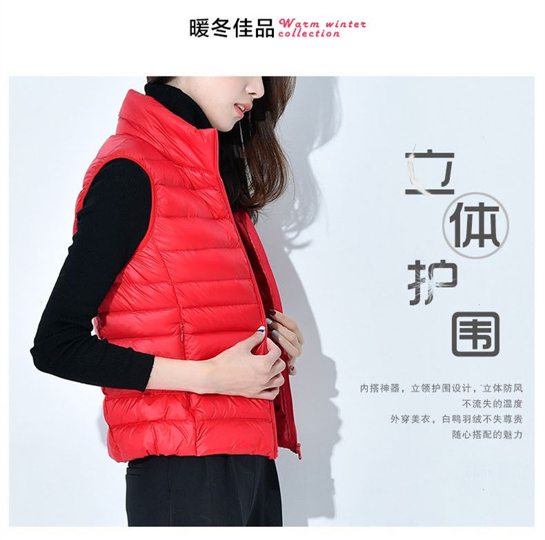时尚 鸭鸭轻薄羽绒服马甲女短款 冬季 立领爆款 鸭绒内胆内搭外套 韩版