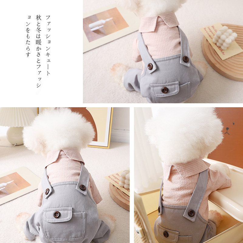 狗狗条纹衬衫 保暖四脚衣奶狗博美泰迪贵宾比熊小型犬冬天穿 背带裤