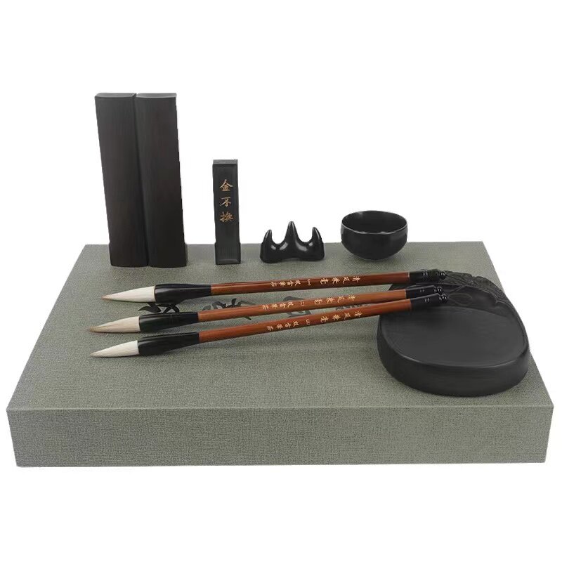 为您提供商品古风纸盒文房四宝套装 毛笔书法用品初学者专用墨条砚台镇尺礼盒装的详细介绍,