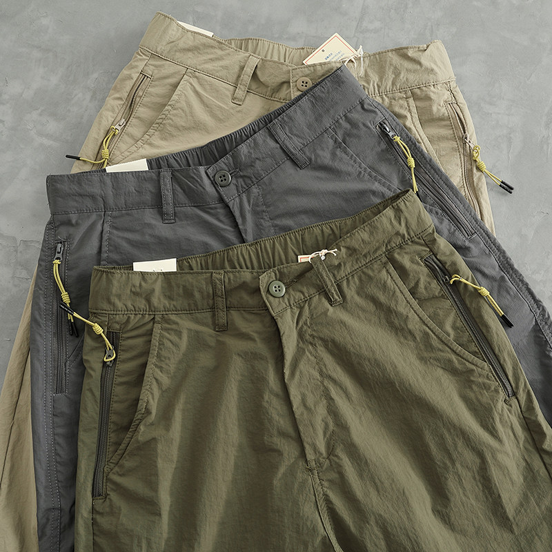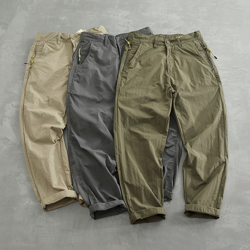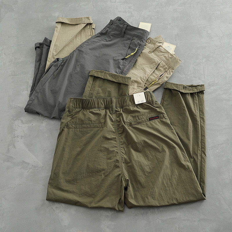 男松紧腰防泼水暗纹格轻便速干锥形小直筒长裤 休闲裤 户外快干工装由