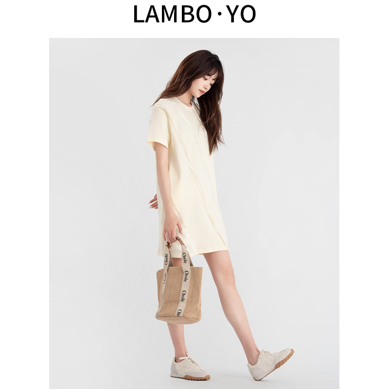 新款 淡人穿搭 LAMBOYO舒芙蕾轻法风夏季 t恤裙 极简连衣裙短袖