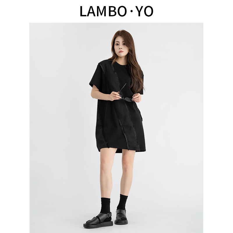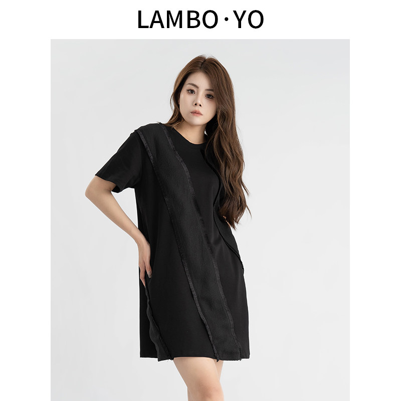 新款 淡人穿搭 LAMBOYO舒芙蕾轻法风夏季 t恤裙 极简连衣裙短袖由