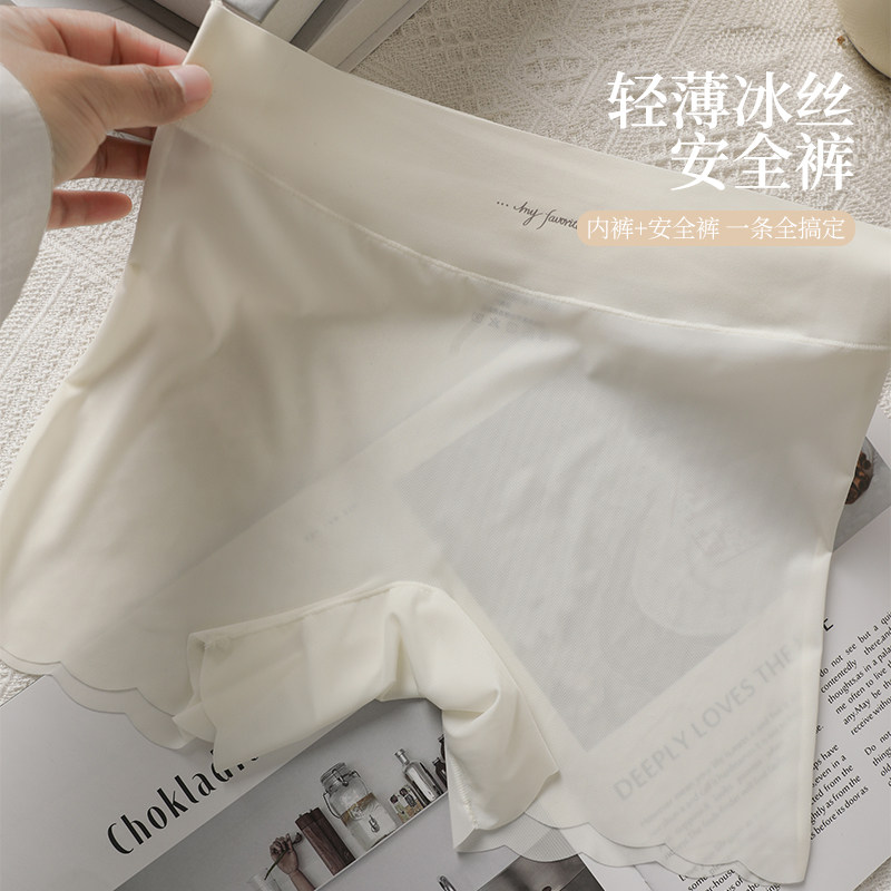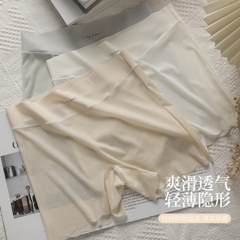 奶皮内裤 薄款 裸穿四角面膜裤 女平角无痕冰丝透气桑蚕丝裆中腰夏季