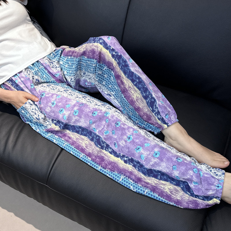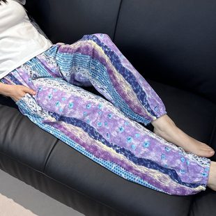 女夏人造棉薄款 棉绸睡裤 新款 可外穿防蚊裤 沙滩长裤 绵绸灯笼裤 夏季