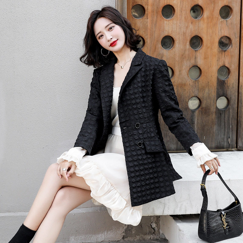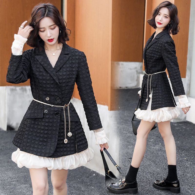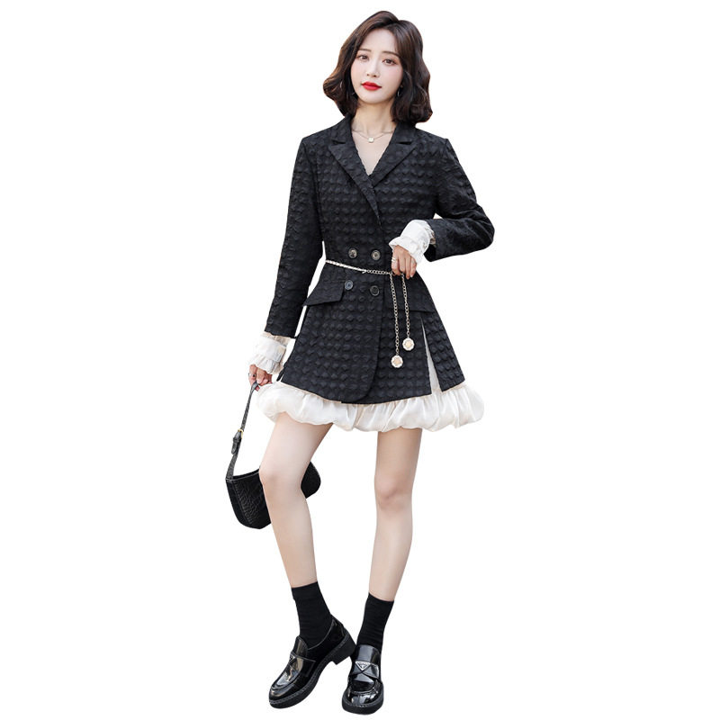 连衣裙两件套西服外套气质套装 2021秋季 泡泡绉小西装 时尚 新款 女装