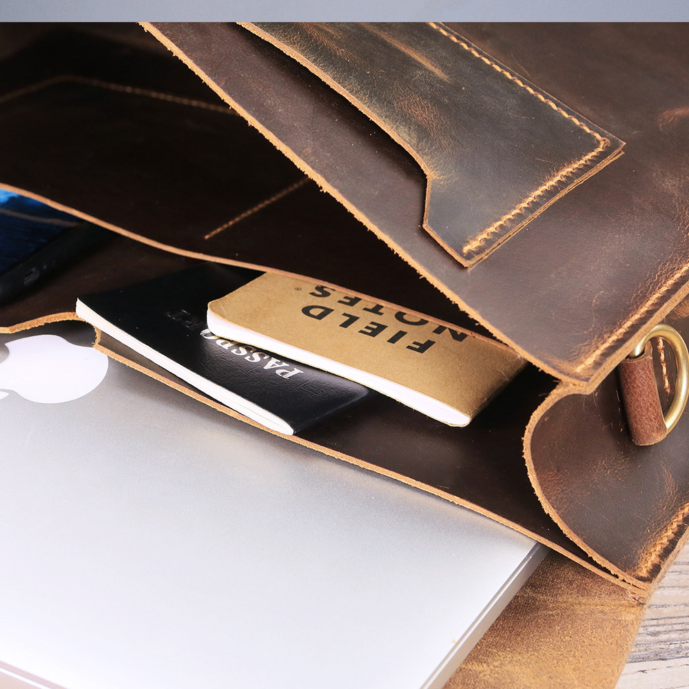 笔记本电脑公文包LCB06S 纯手工缝纫真皮疯马皮棕色复古个性