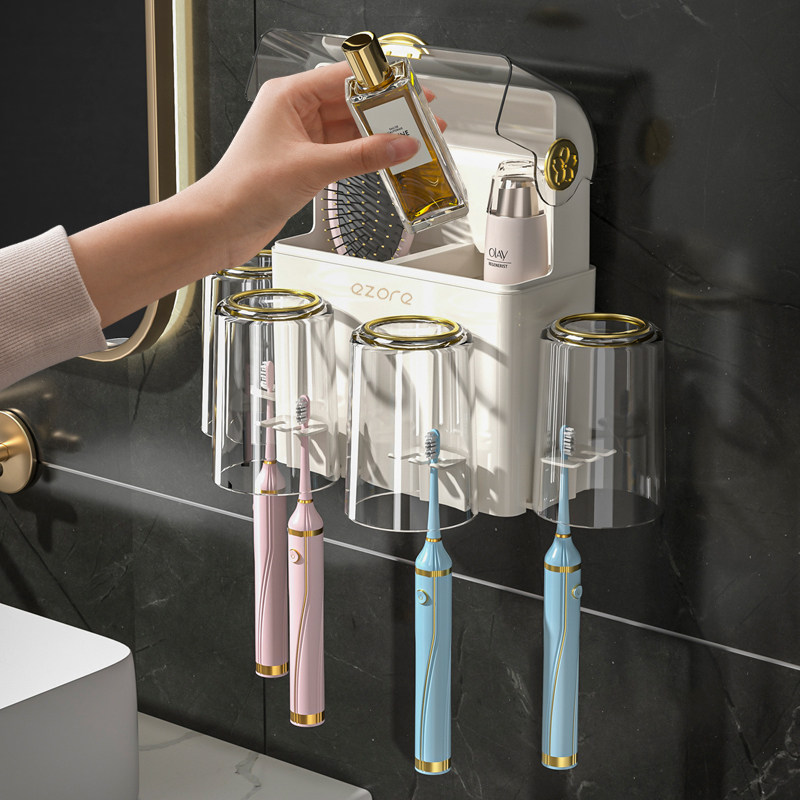 免打孔卫生间牙具座牙膏收纳浴室 牙刷牙杯壁挂置物架电动牙刷套装