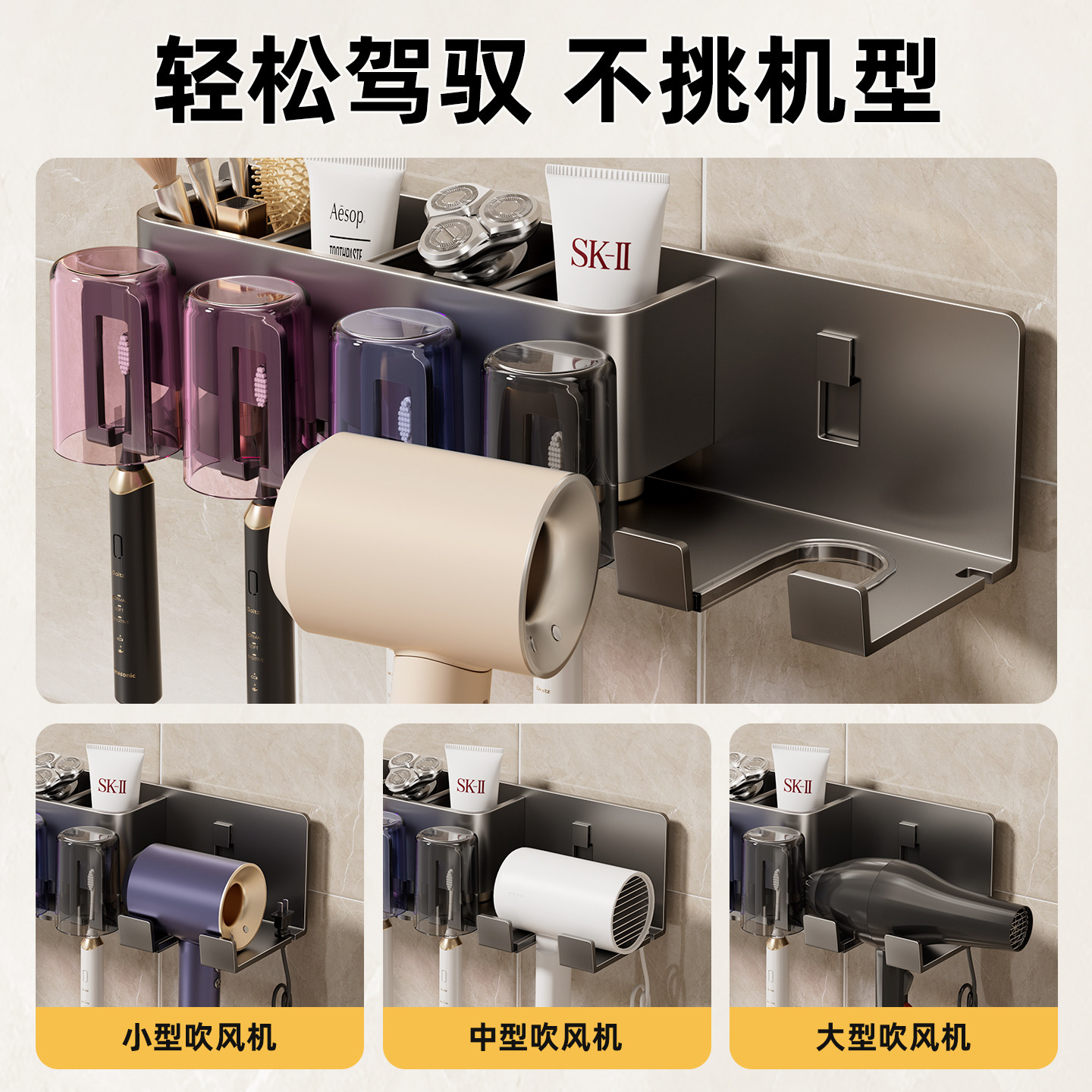 免打孔吹风机支架一体卫生间牙杯漱口杯架子 电动牙刷置物架壁挂式