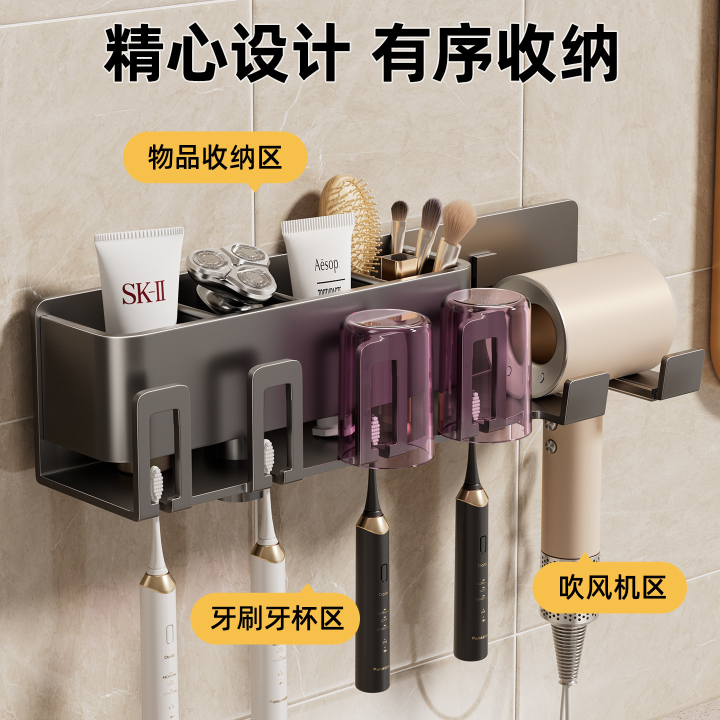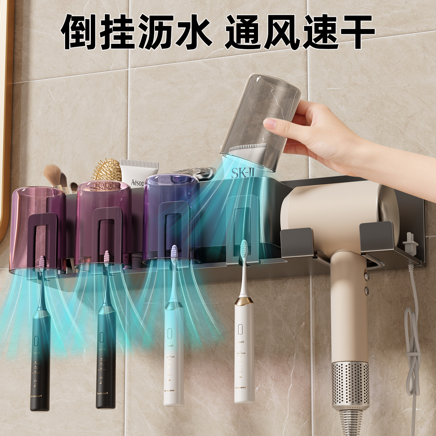 免打孔吹风机支架一体卫生间牙杯漱口杯架子 电动牙刷置物架壁挂式由