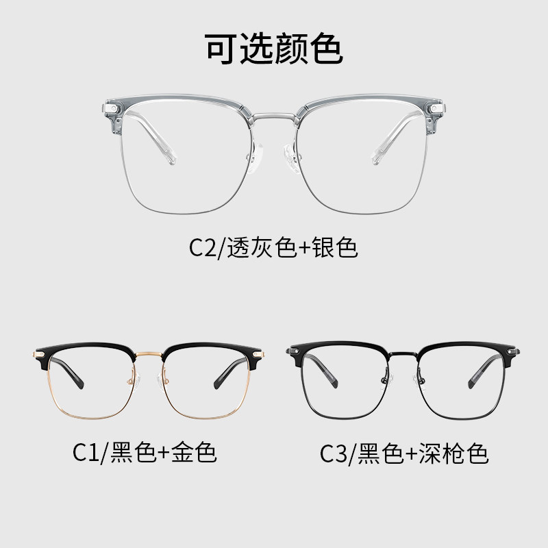 商务半框眼睛架定制成品光学镜可配度数近视框眼镜防蓝光 狂飙男士