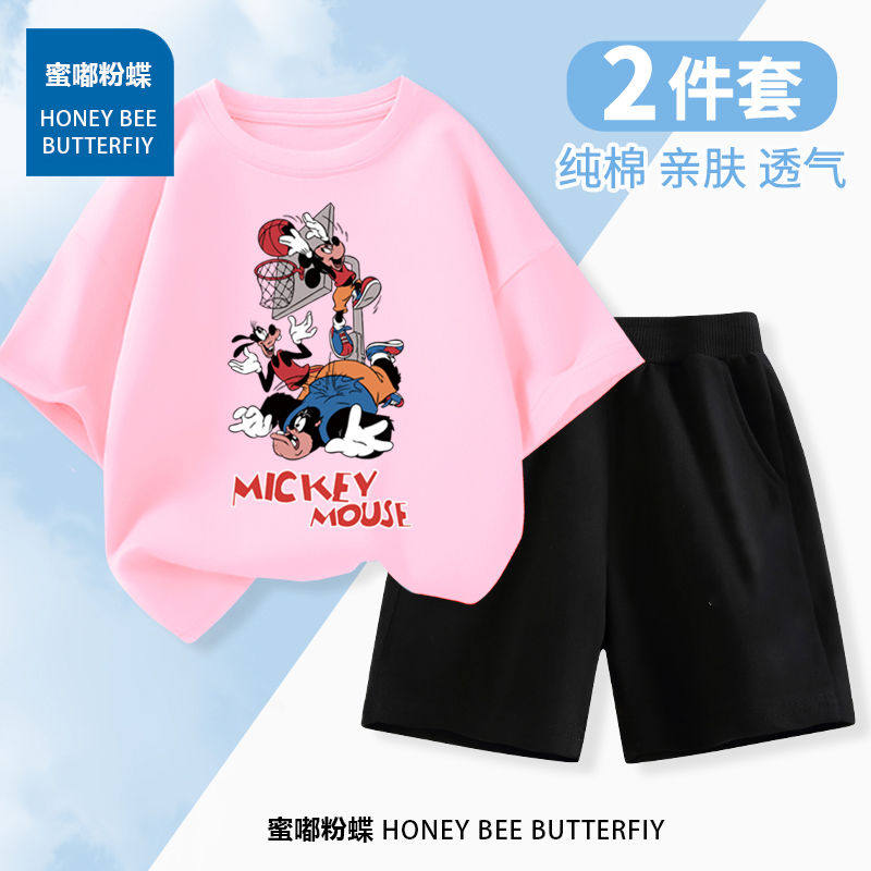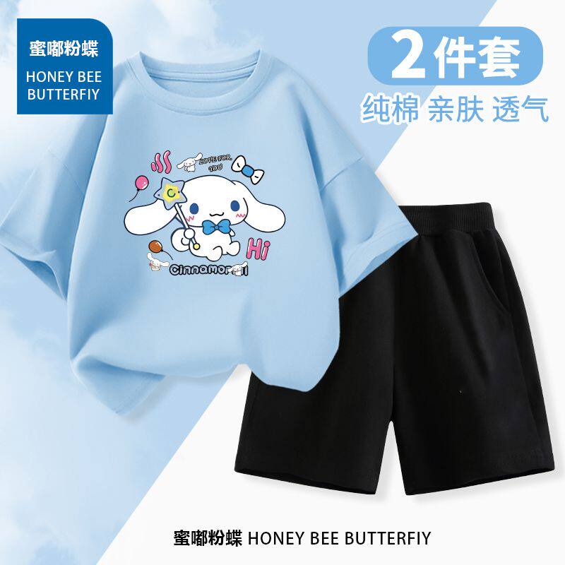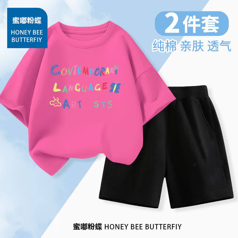 T恤新款 儿童夏季 套装 男童女童纯棉短袖 两件套潮 洋气宝宝休闲短裤