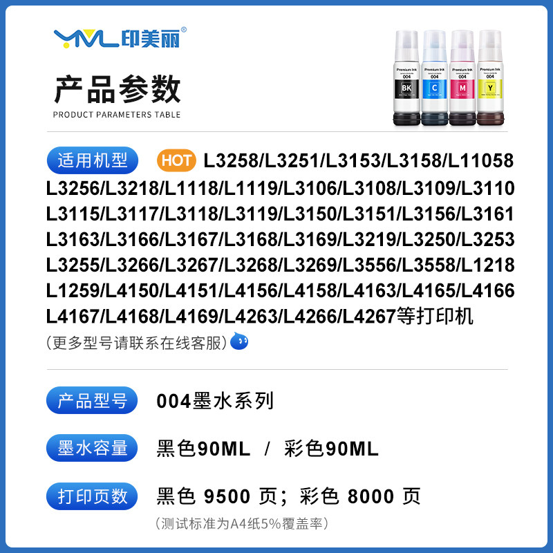 为您提供商品适用epson爱普生004 L3251 002打印机墨水彩色L3258 L3153 L3218 L3118 L3256 L3156 L3158墨盒非原装 L3119的详细介绍,