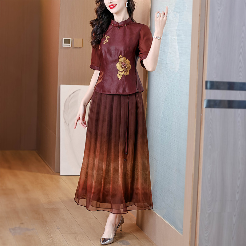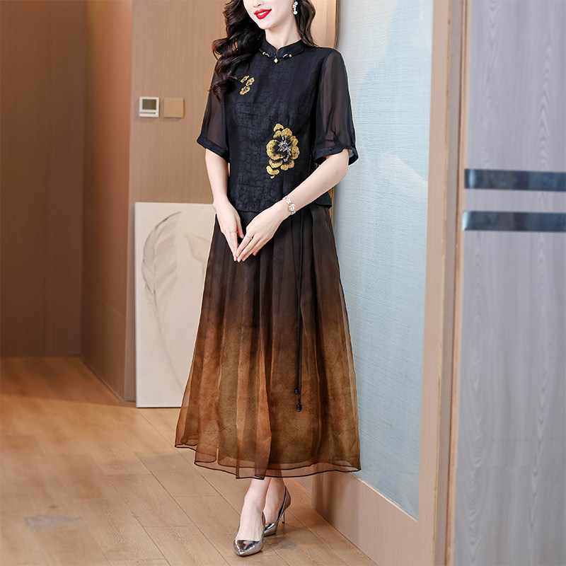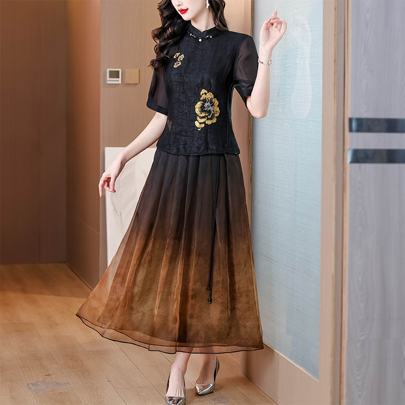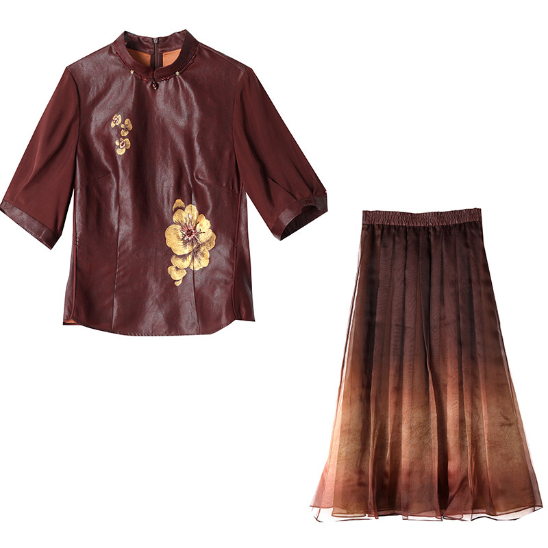 为您提供商品女新中式 手绘绣花真丝上衣高腰半裙两件套春 香云纱套装 2025年轻款的详细介绍,