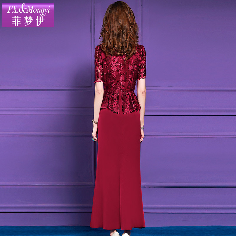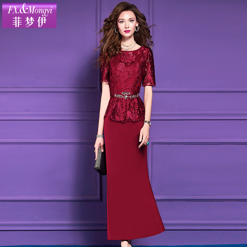 御姐轻熟风气质女神范鱼尾长裙子 菲梦伊重工钉珠绣花连衣裙女夏装