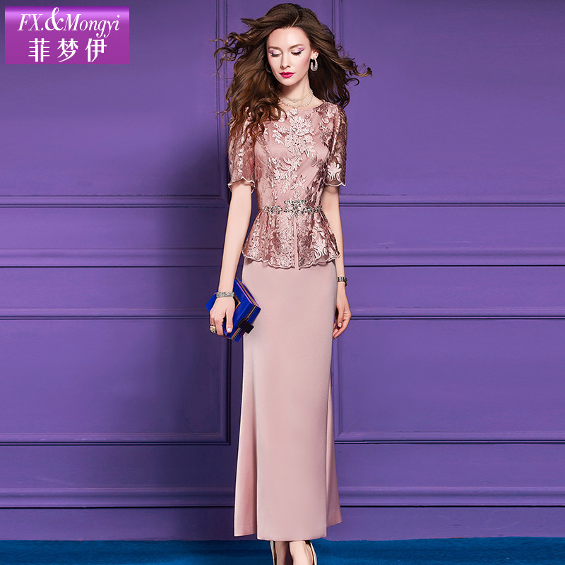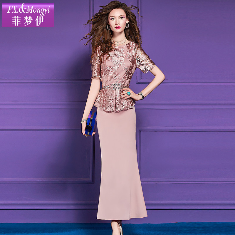 御姐轻熟风气质女神范鱼尾长裙子 菲梦伊重工钉珠绣花连衣裙女夏装由