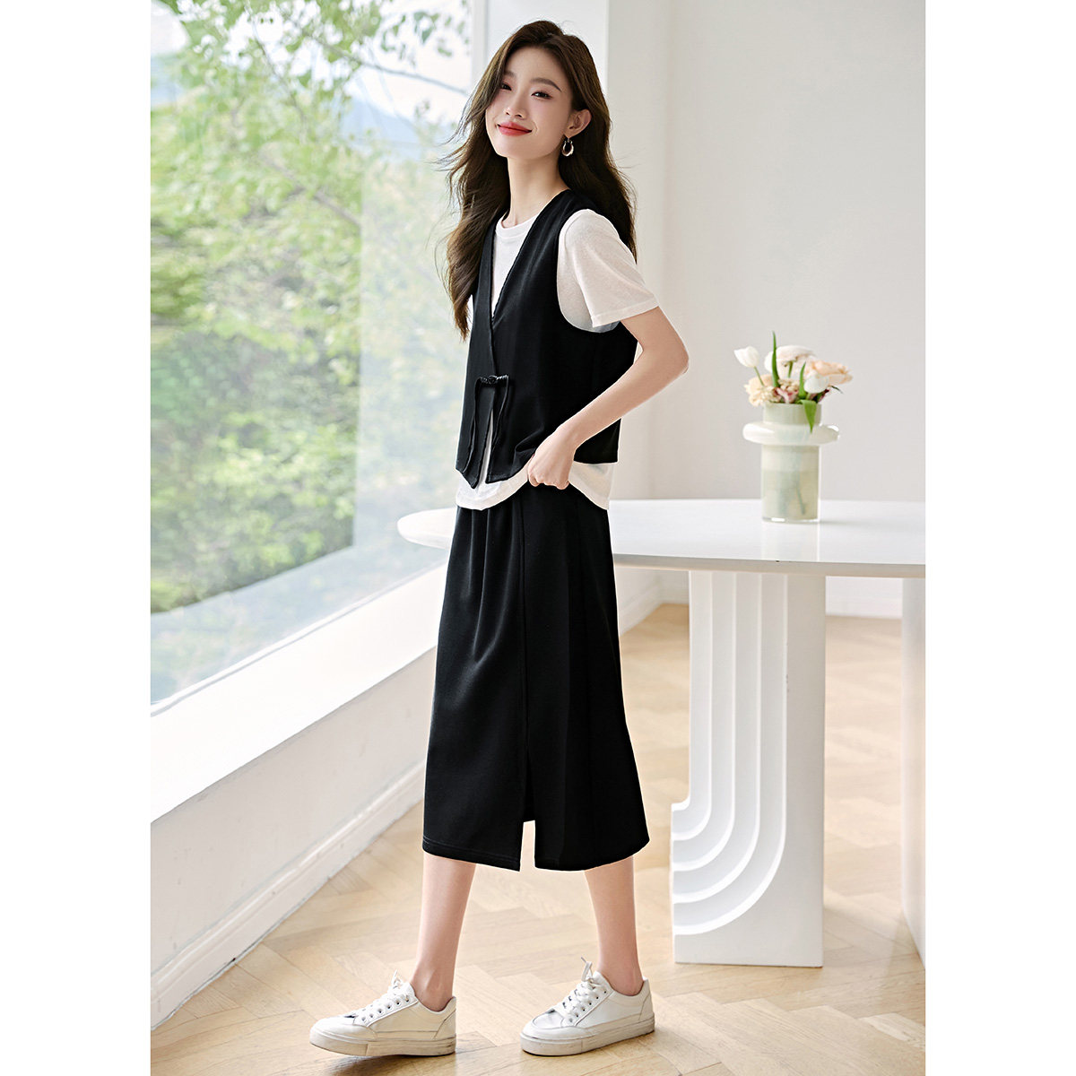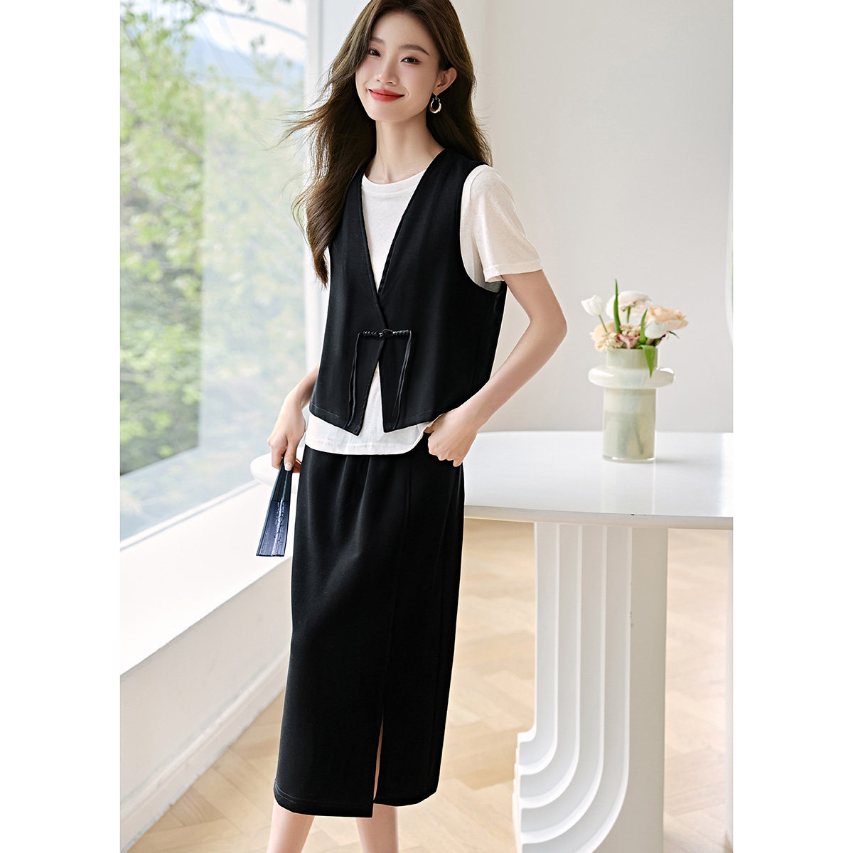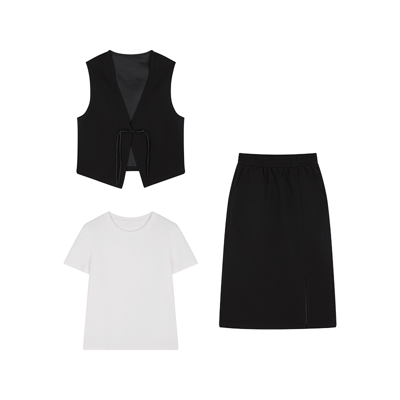 新款 沫晗依美都市休闲松弛感时髦新中式 马甲半裙套装 2026夏季 套装由