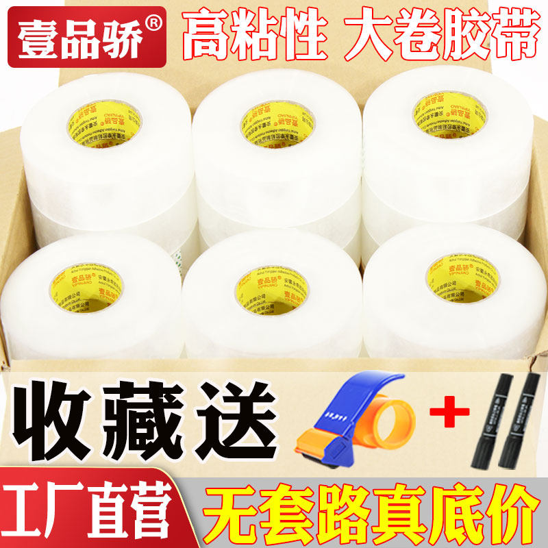 胶纸淘宝米黄色快递打包封口胶布批发大号4.5单面胶条超大加厚6cm宽胶带 壹品骄透明胶带批发大卷封箱胶带包装