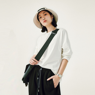 春款 云上生活 优质新疆棉白色圆领百搭长袖 T恤女新款 上衣女装