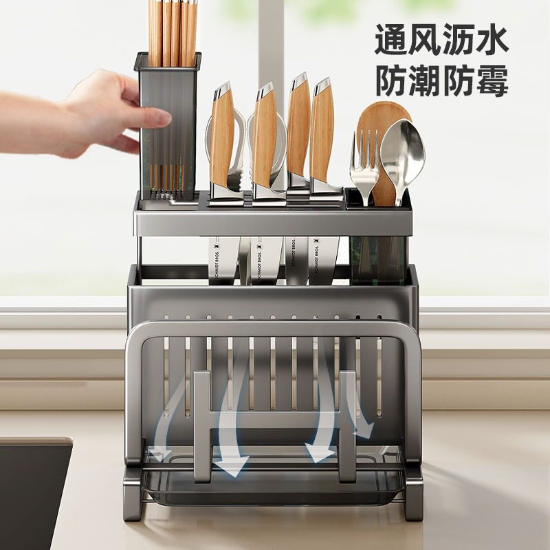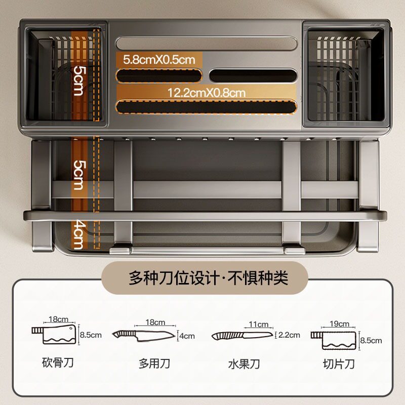 为您提供商品厨房刀架置物架不锈钢刀架菜刀砧板筷笼一体多功能刀具收纳架置物的详细介绍,