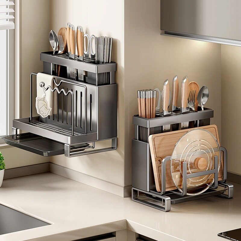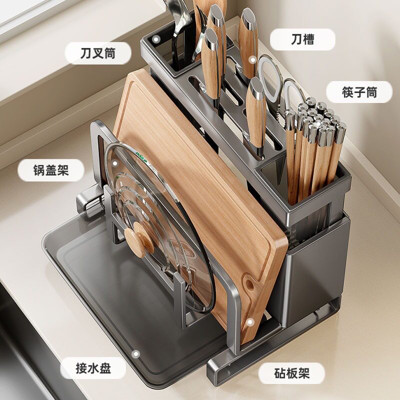厨房刀架置物架多功能菜刀砧板锅盖一体收纳架台面刀具菜板放置架
