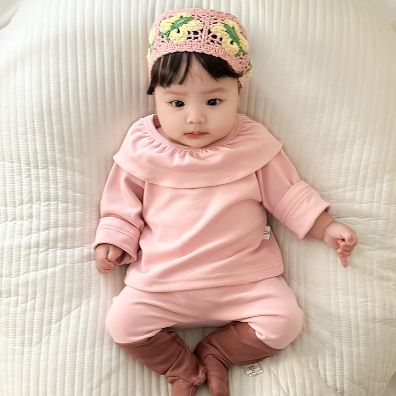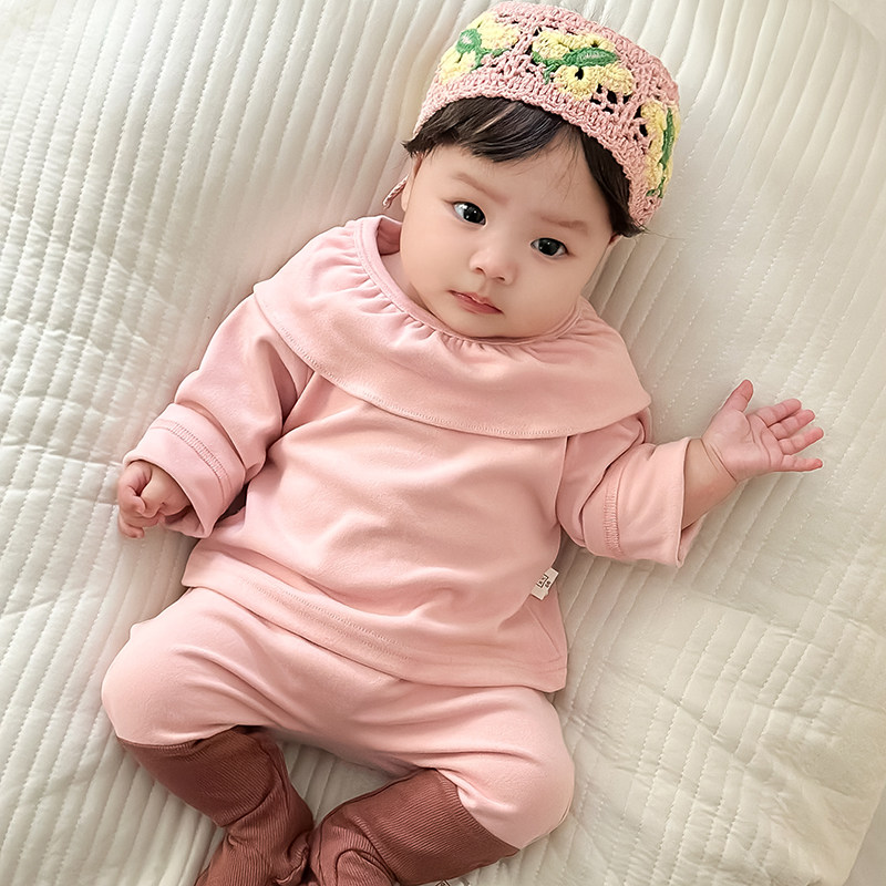 女童长裤 女宝宝春秋装 两件套 花边领打底衫 婴幼儿洋气长袖 新款 套装由