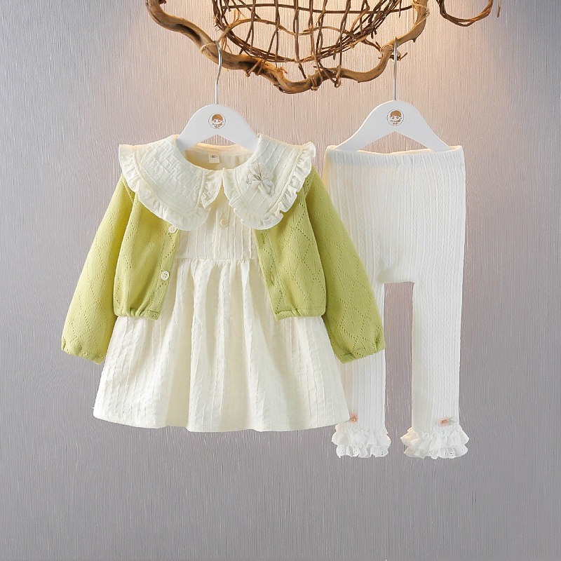 婴儿童装 2026新款 洋气套装 女童衣服公主裙子外套三件套 女宝宝秋装
