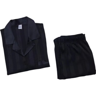 为您提供商品家居服睡衣套装 24年新款 男士 丝绸缎面纯色黑条纹气质休闲夏款 包邮的详细介绍,