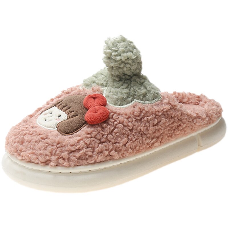 女可爱卡通小女孩居家用室外保暖防滑情侣包跟棉拖鞋 男 棉拖鞋 冬季