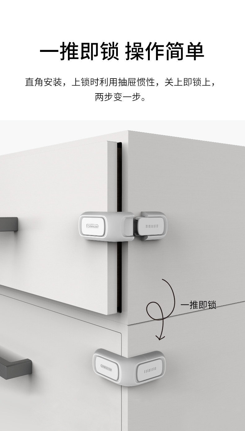 为您提供商品抽屉扣防宝宝开拉夹手防滑出固定卡扣柜子柜门锁扣直角儿童安全锁的详细介绍,