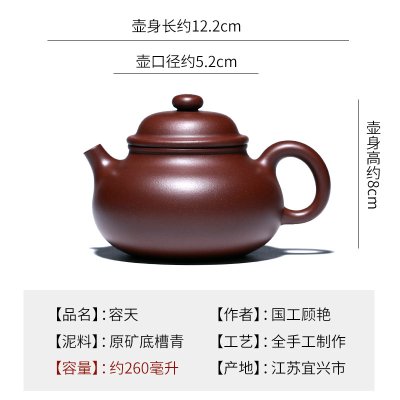 为您提供商品容天 茗阳宜兴紫砂壶纯全手工原矿家用底槽青泡茶壶功夫茶具礼盒装的详细介绍,