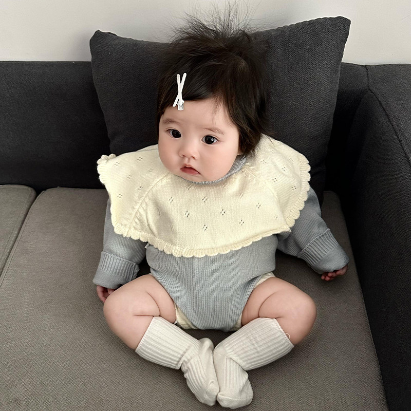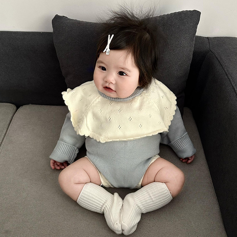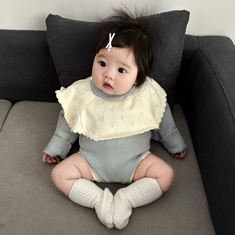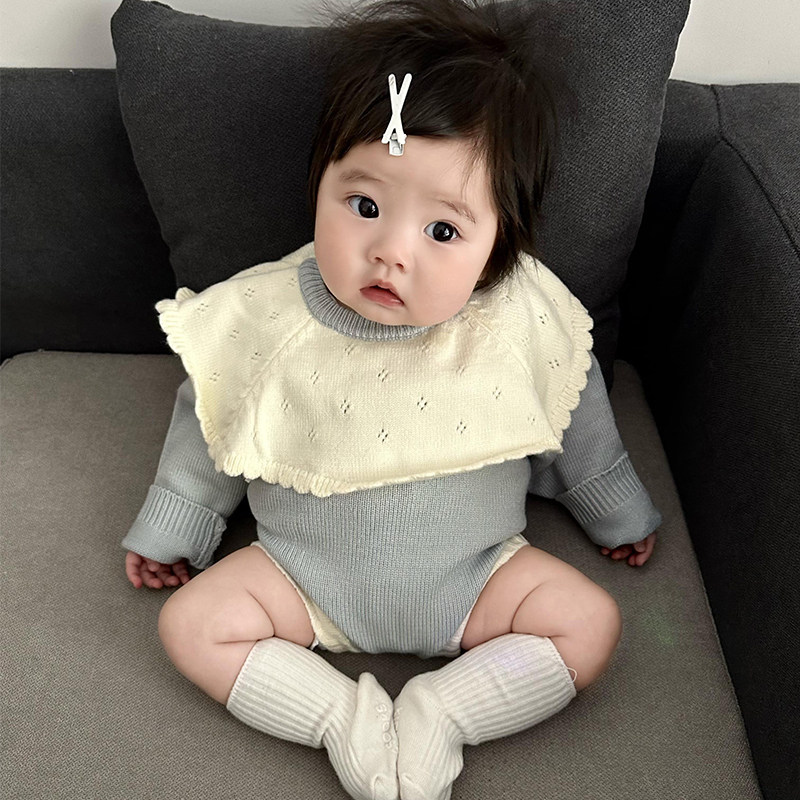 女宝宝衣服套装 针织衫 荷叶边撞色上衣婴儿洋气毛球短裤 两件套 春季