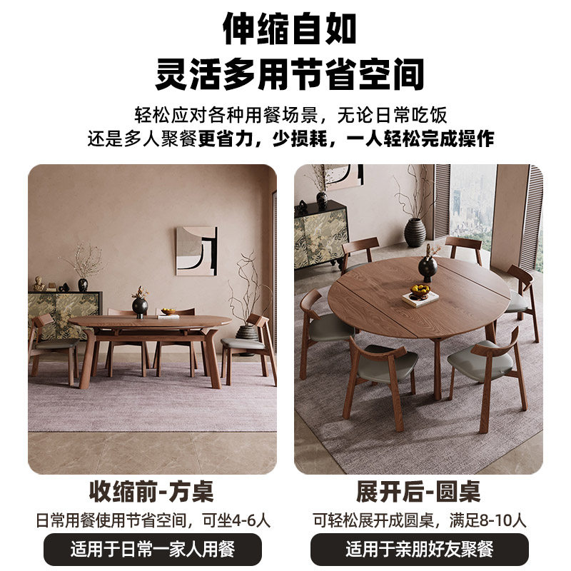 为您提供商品全实木伸缩餐桌可变圆桌子客厅家用小户型胡桃木色折叠圆形饭桌的详细介绍,