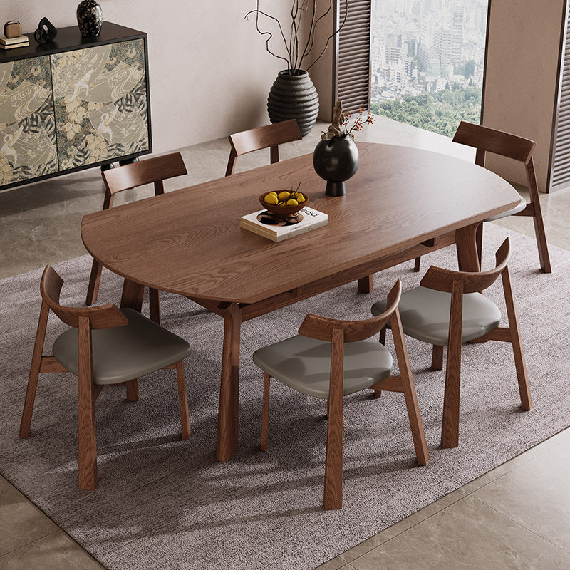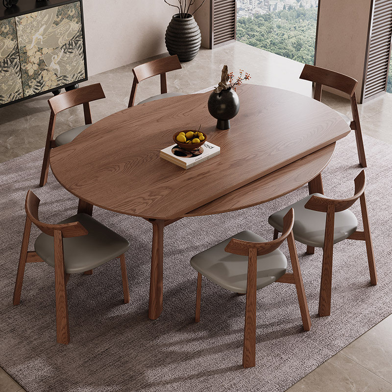 全实木伸缩餐桌可变圆桌子客厅家用小户型胡桃木色折叠圆形饭桌