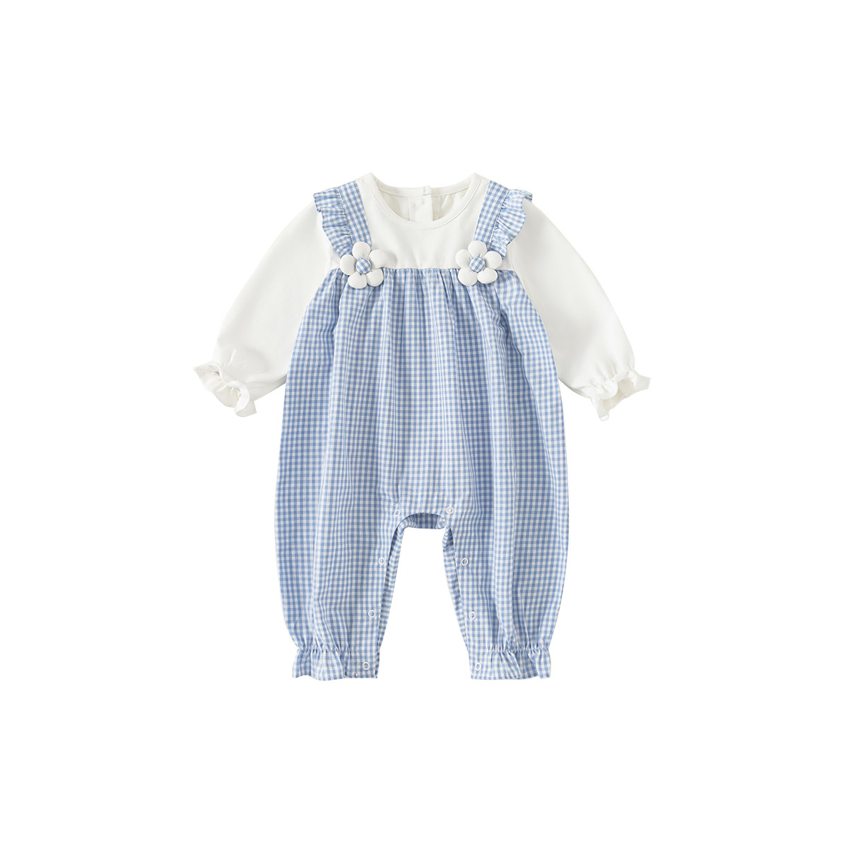 嫚熙婴儿连体衣宝宝春秋外出服连身衣山茶花华夫格男女童哈衣爬服