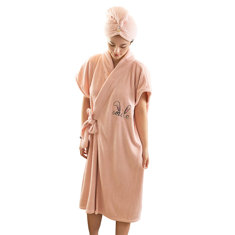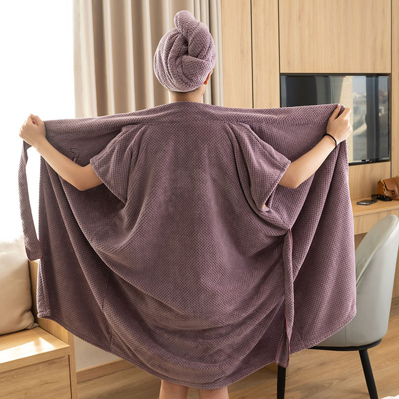 秋冬浴袍可穿浴巾女家用珊瑚绒吸水柔软速干浴裙洗澡睡袍睡衣连帽