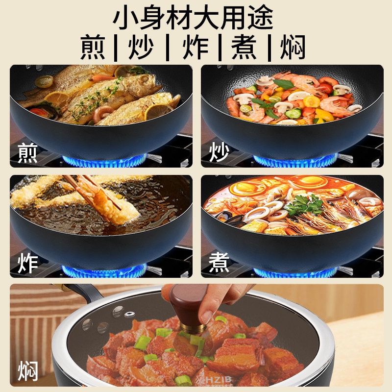 锤纹迷你小铁锅一人食家用炒菜不粘锅电磁炉燃气灶无涂层平底炒锅