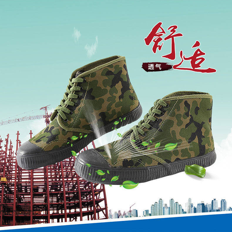高帮布鞋 解放鞋 迷彩 登山防滑耐磨低帮鞋 工作鞋 劳保鞋 男女工地胶鞋