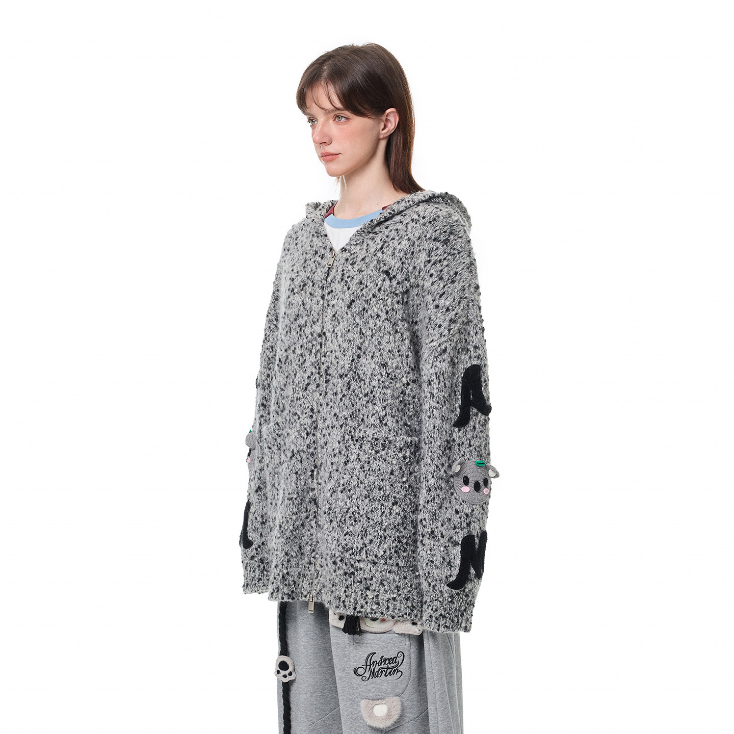 ANDREA 贴布刺绣毛衣连帽针织开衫 男女同款 MARTIN秋冬新品