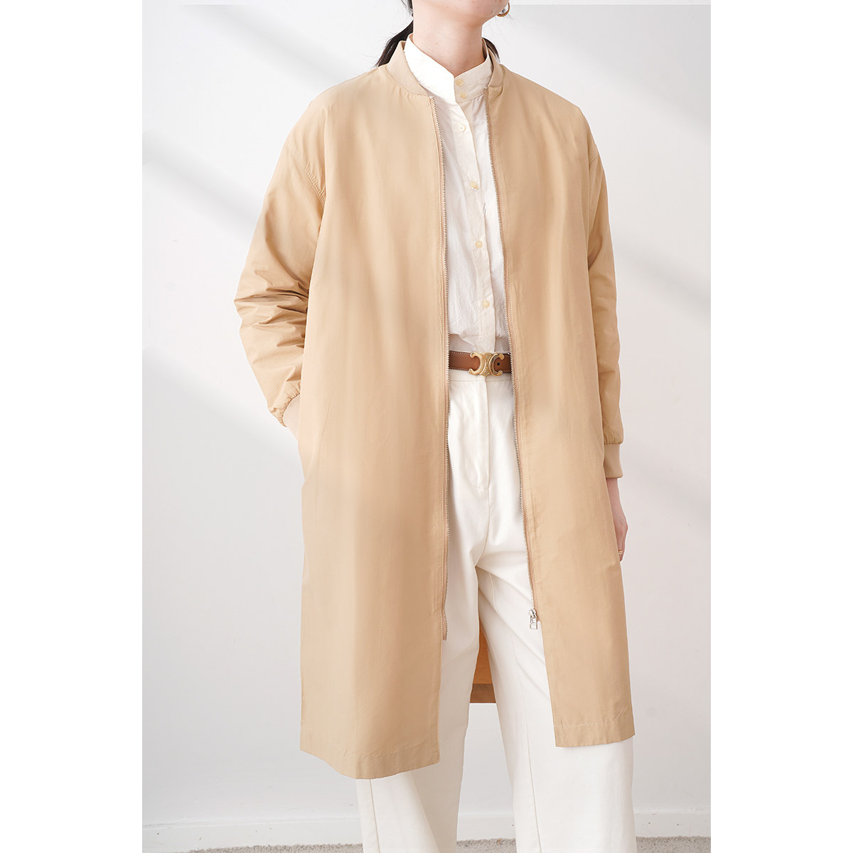 为您提供商品休闲百搭罗纹立领中长款 风衣外套27242 简约时尚 日单品牌春秋新款的详细介绍,