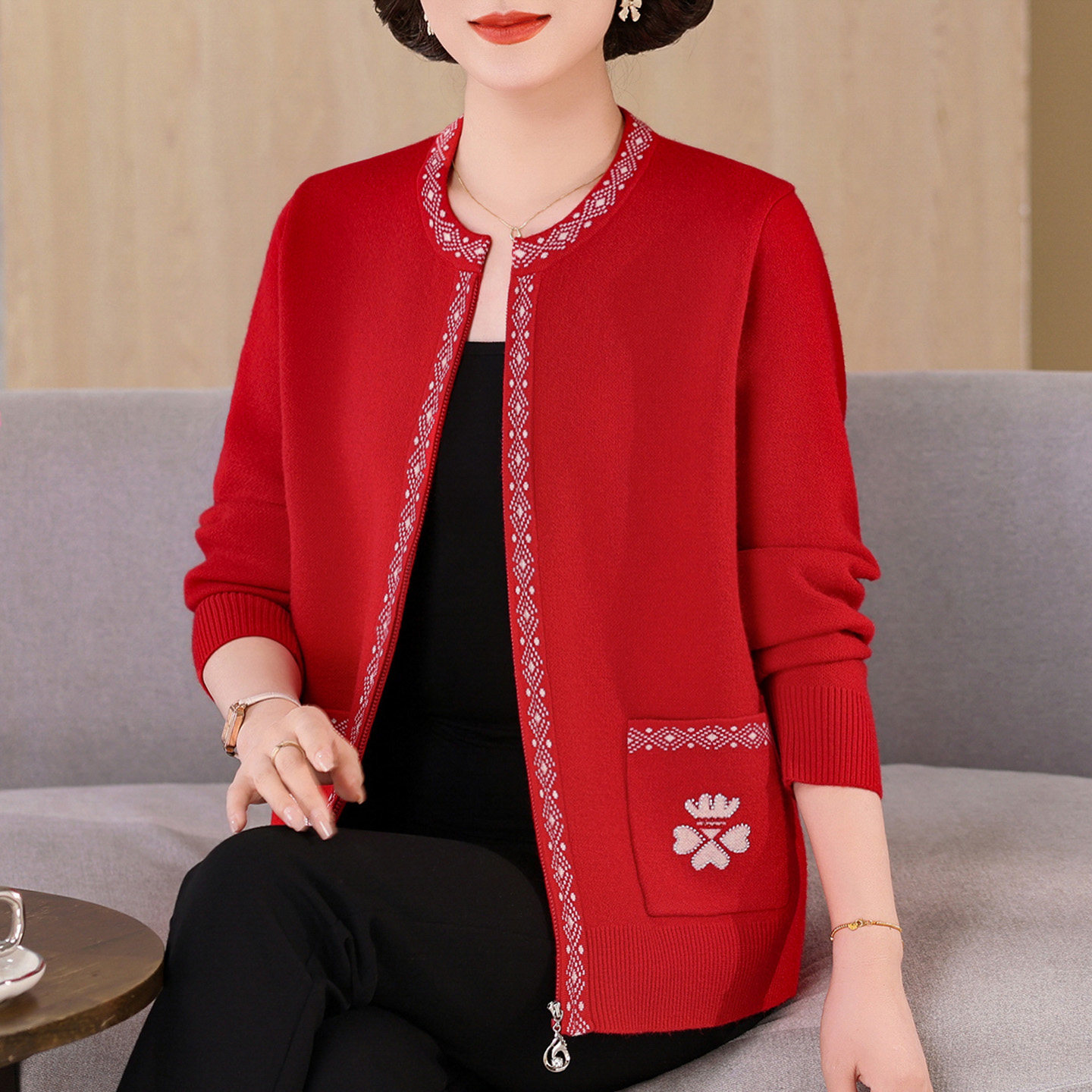 年轻妈妈春装 针织外套2026新款 洋气质中老年人女装 夹克上衣服 时尚