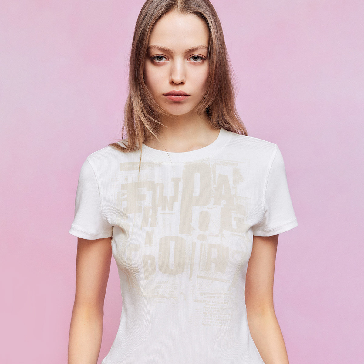 ONLY2026春季 显瘦纵向罗纹复古斑驳字母印花短款 短袖 T恤女 新款由