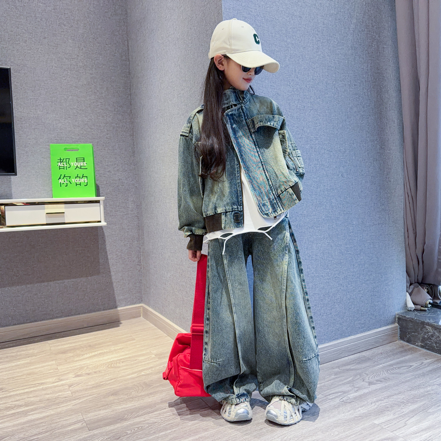 为您提供商品女童复古牛仔套装 新款 洋气女孩夹克外套阔腿裤 潮酷两件套 2026春装的详细介绍,