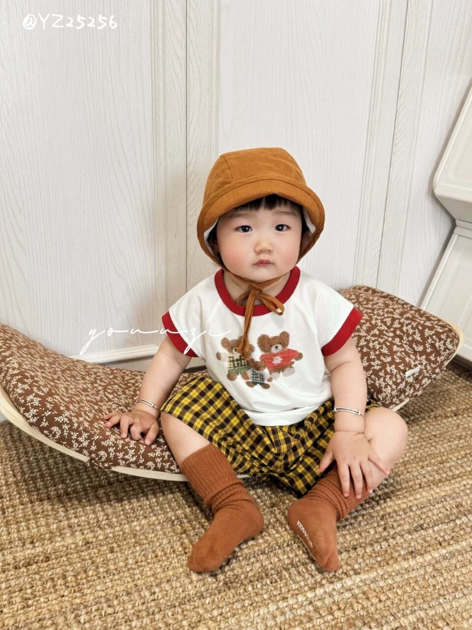 断码 丸纸右子夏款 男女宝卡通印花套装 两件套外出服洋气 清仓由