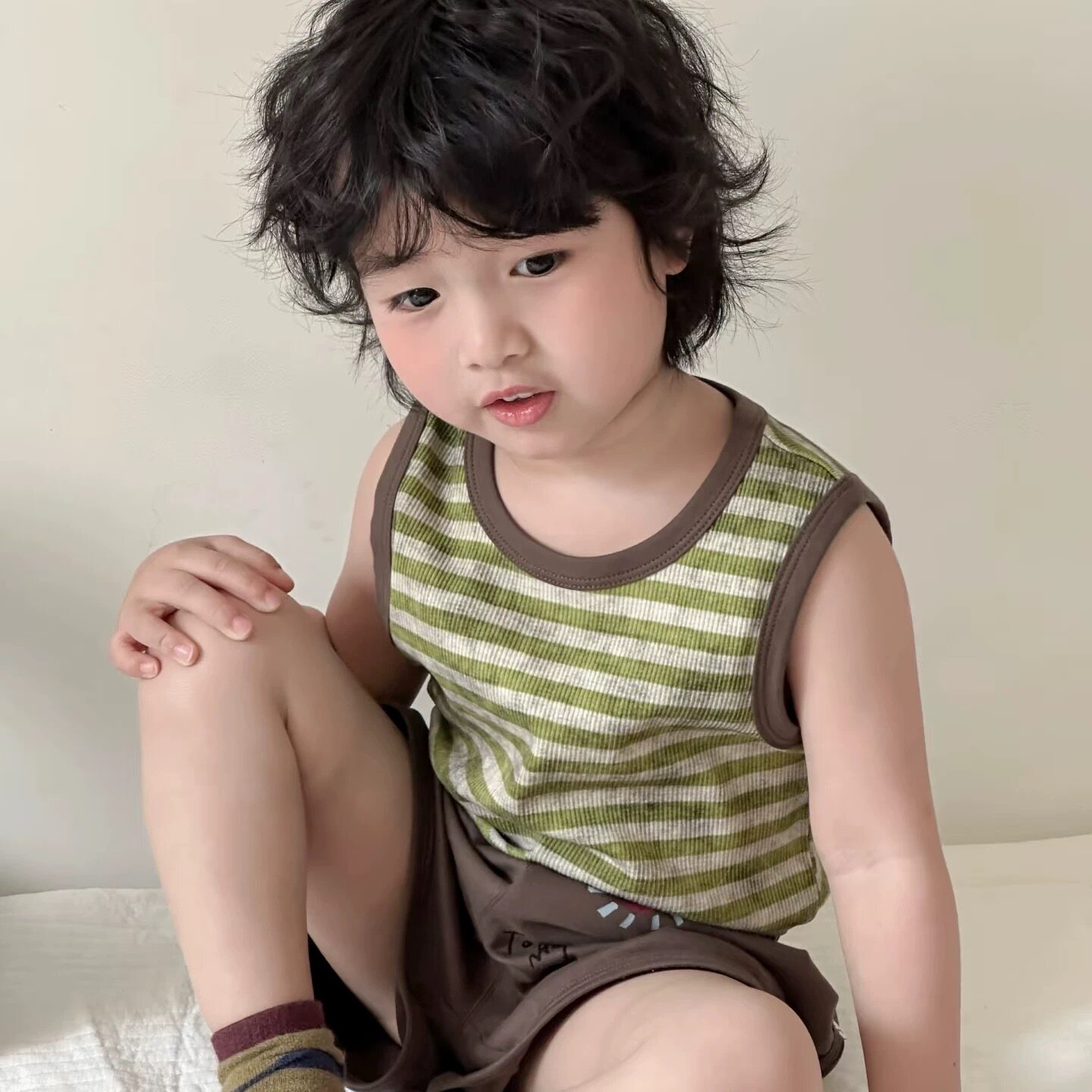 断码 丸纸右子夏款 男女宝卡通印花套装 两件套外出服洋气 清仓