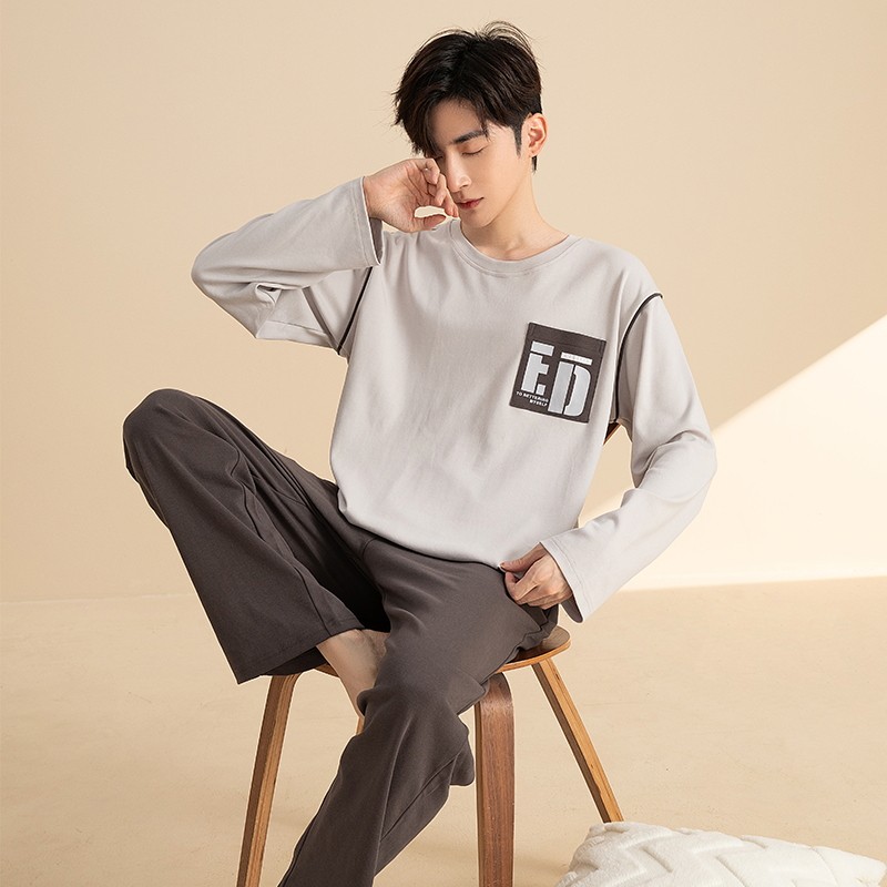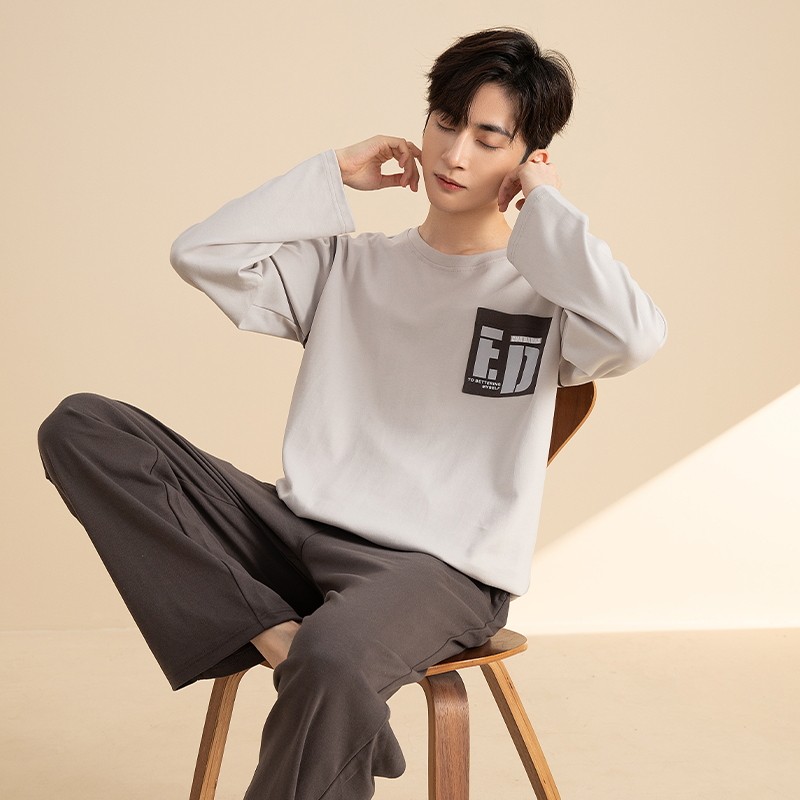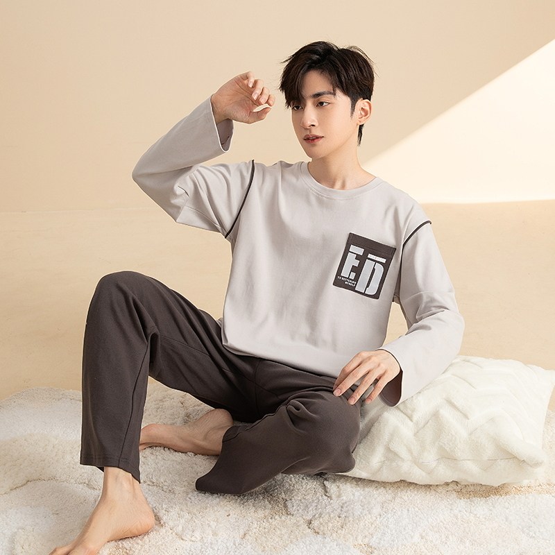 睡衣套装 春秋季 男士 长袖 家居服青少年运动休闲可外穿夏冬天 大码由