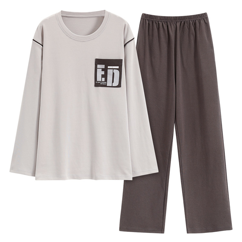 纯棉长袖 薄款 睡衣春秋季 全棉家居服 大码 休闲宽松男款 套装 芬腾男士