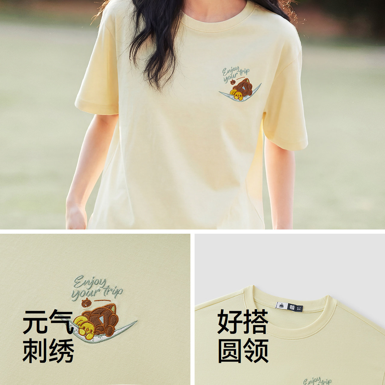 为您提供商品吸湿速干卡通刺绣落肩2026新款 可爱上衣 T恤女夏季 森马罗小黑短袖的详细介绍,