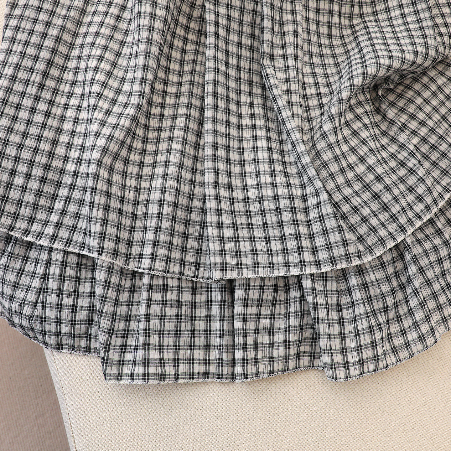 韩系复古格纹两件套女春季 套装 短款 T恤半身裙 显瘦高腰半身裙时尚